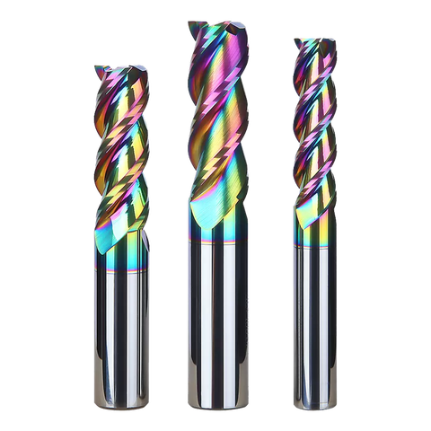 Jr108 Cnc Frees Hrc60 3 Fluiten Dlc Regenboog Coating Platte Carbide Einde Molen Voor Aluminium